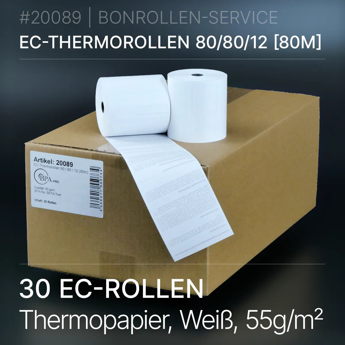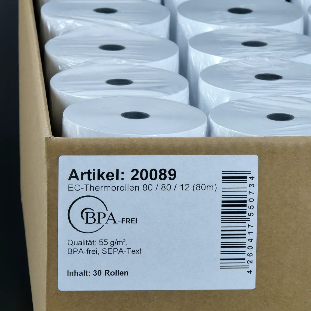 Verpackungseinheit mit 30 EC-Thermorollen 80x80x12 (80m) mit SEPA-Text