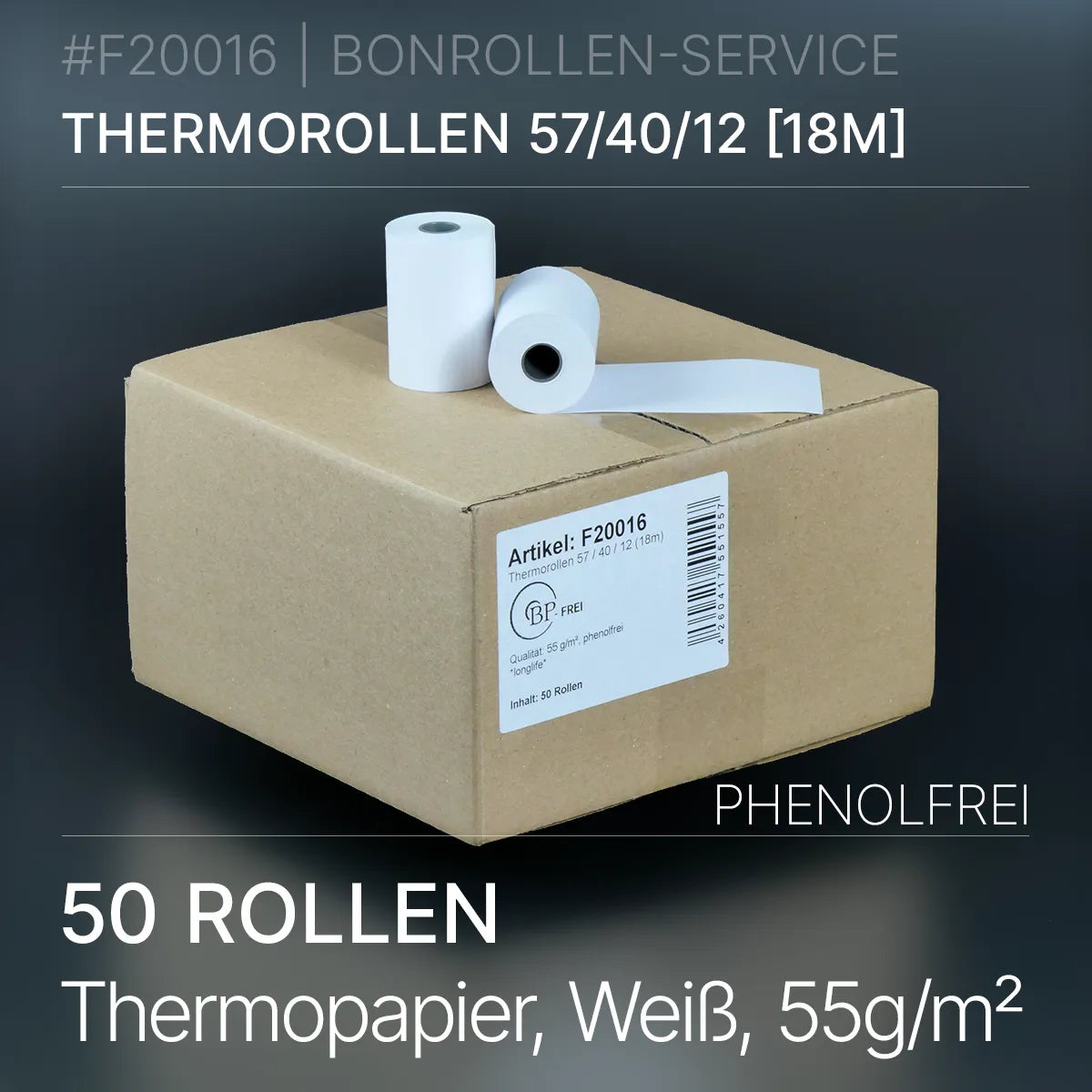 Verpackungseinheit mit 50 phenolfreien Thermorollen 57 / 40 / 12 in 10-Jahres-Qualität
