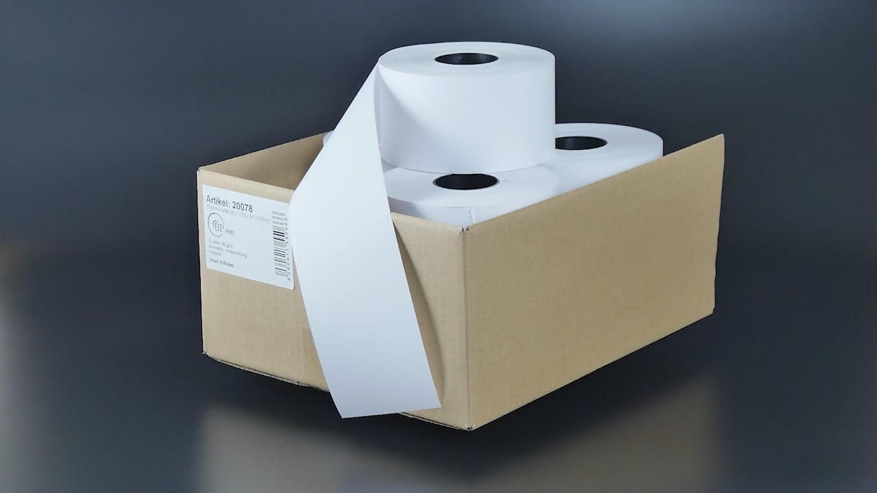 Diese Bonrollen aus phenolfreiem Thermopapier (BP-frei) haben eine Breite von 82mm und einen Durchmesser von 150mm. Die Öffnung der Kernhülse beträgt 51mm. Die Grammatur des Papiers beträgt 80g/m². Auf jeder Thermorolle befinden sich 192 laufende Meter.