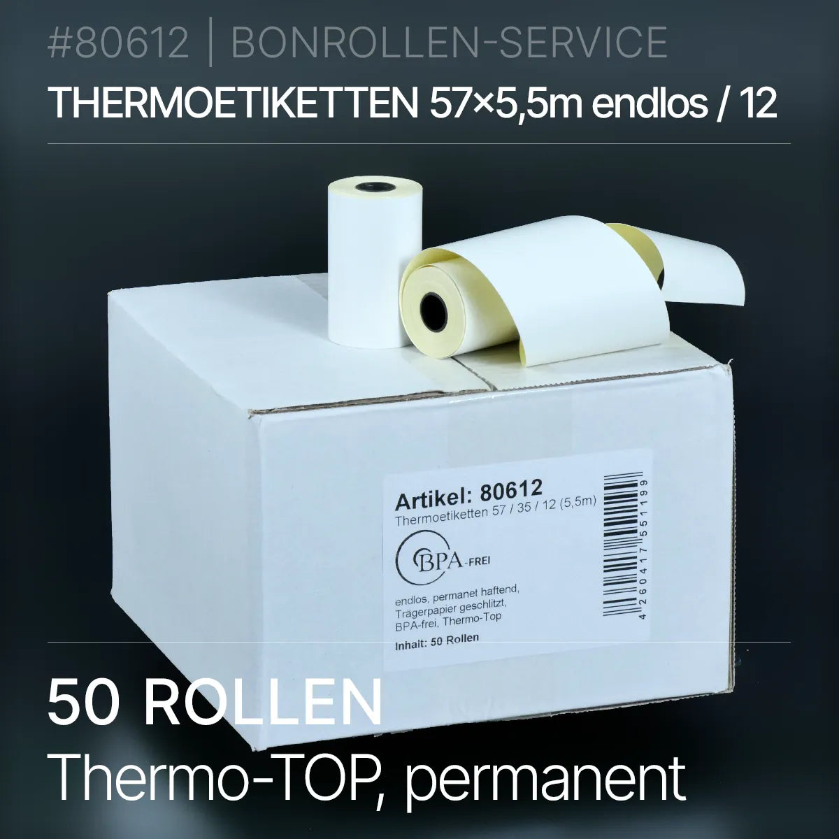 (je Rolle 1 Etikett im Format 57mm x 5,5m, Thermopapier - Thermo-TOP, BPA-frei)