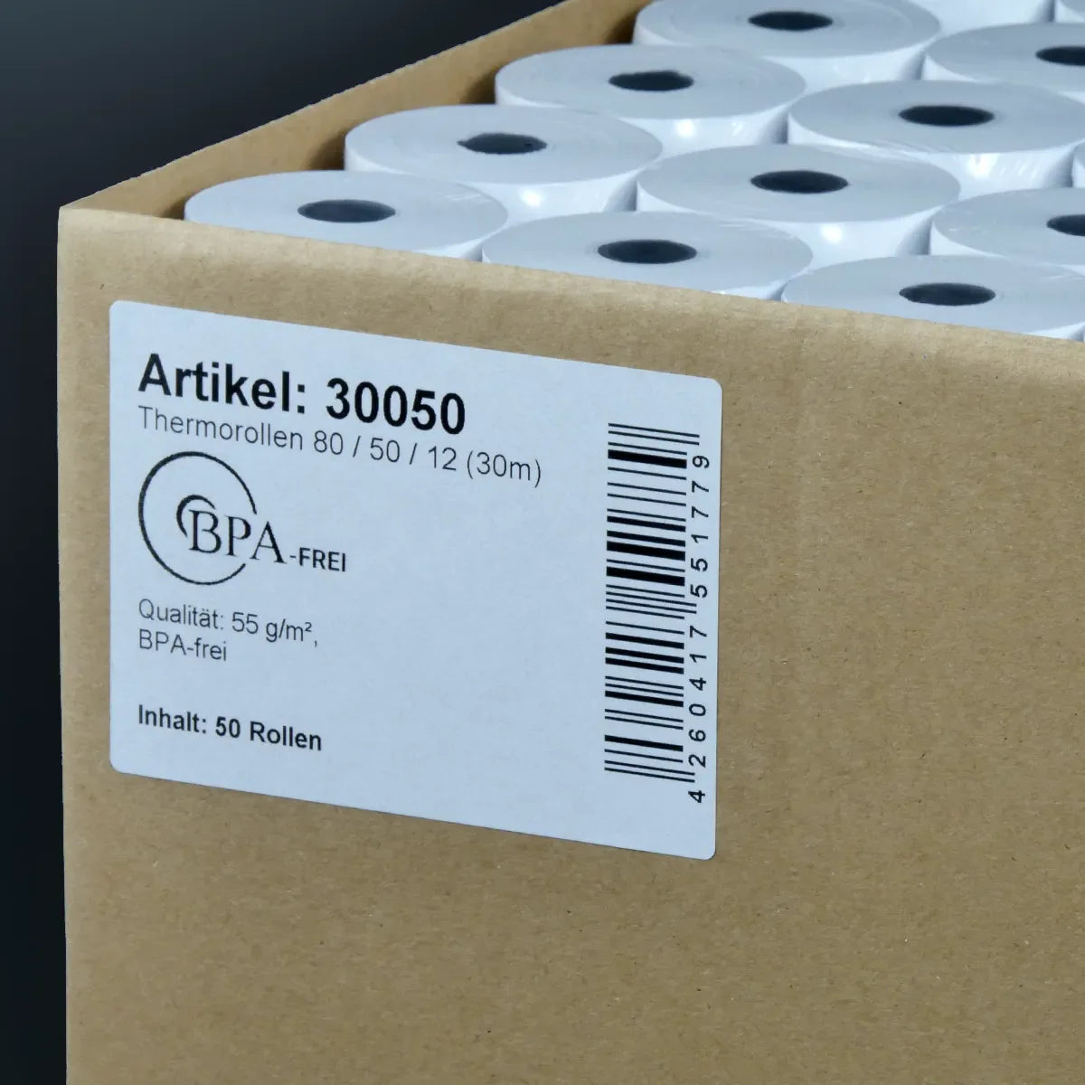 Verpackungseinheit mit 50 Thermorollen 80x50x12 (30m)