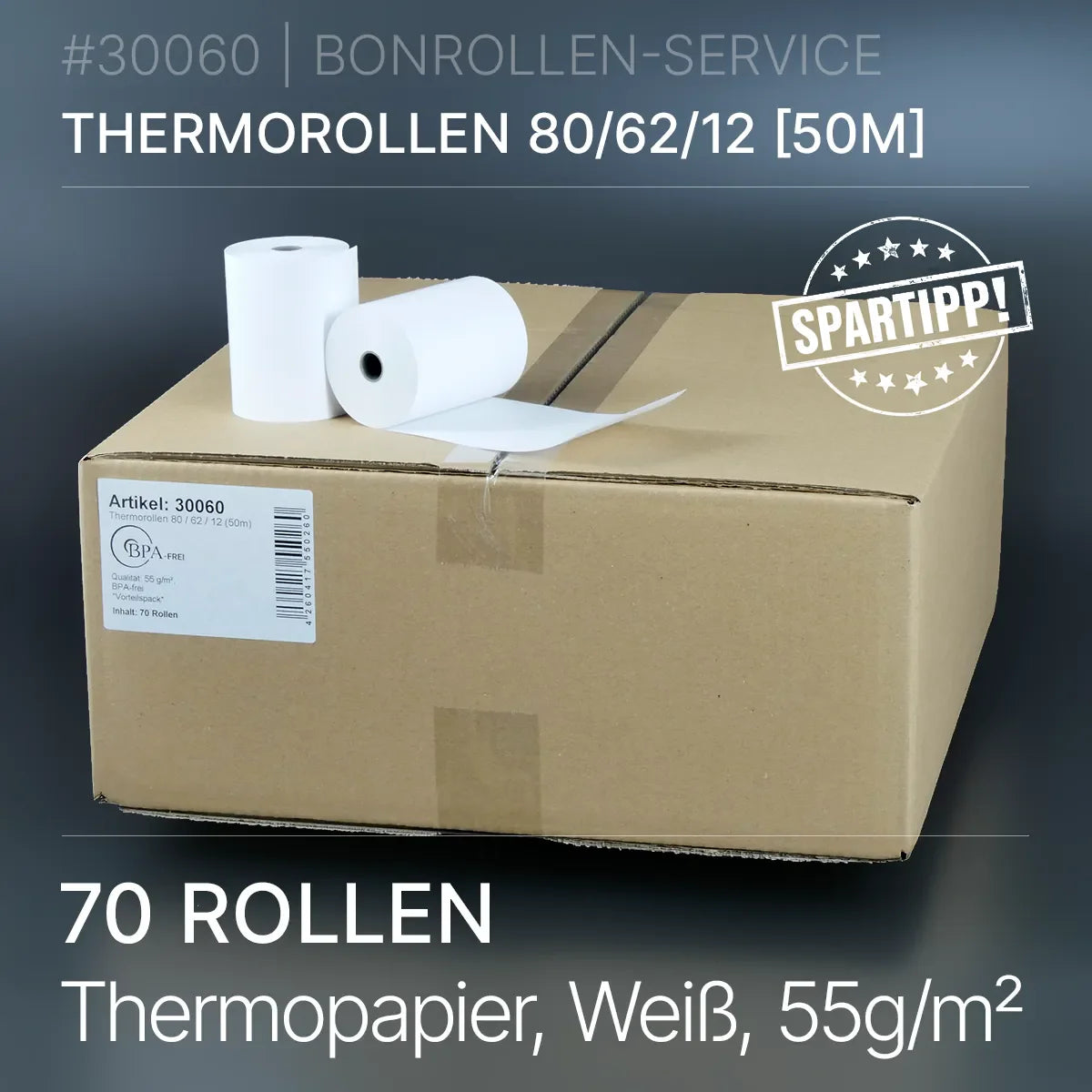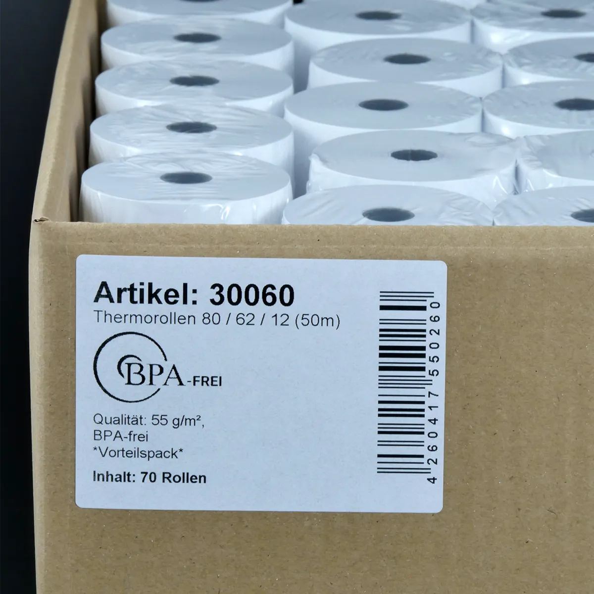 Verpackungseinheit mit 70 Thermorollen 80x62x12 (50m) im Sparpack