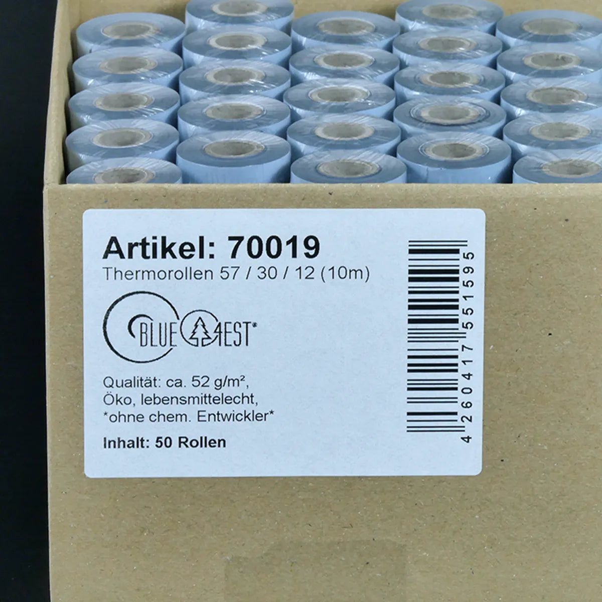 deutschlandweit versandkostenfrei!- 50 Thermo-Bonrollen 57x30x12 Blue4est®