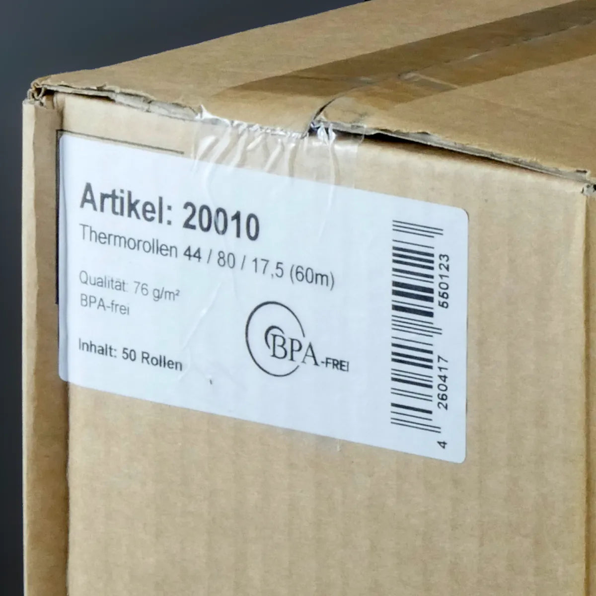 Unsere Thermorollen entsprechen dem aktuellen Sicherheitsstandard und sind vollständig frei von Bisphenol A (BPA). Seit dem EU-weiten Verbot im Jahr 2020 nutzen moderne Thermopapiere unbedenkliche Ersatzstoffe, was die Handhabung für Ihre Mitarbeiter und Kunden gesundheitlich sicherer macht. Neben der Konformität mit gesetzlichen Richtlinien zeichnen sich unsere Rollen durch eine gleichmäßige Beschichtung aus, die ein sauberes und kontrastreiches Druckbild ohne Streifenbildung garantiert.