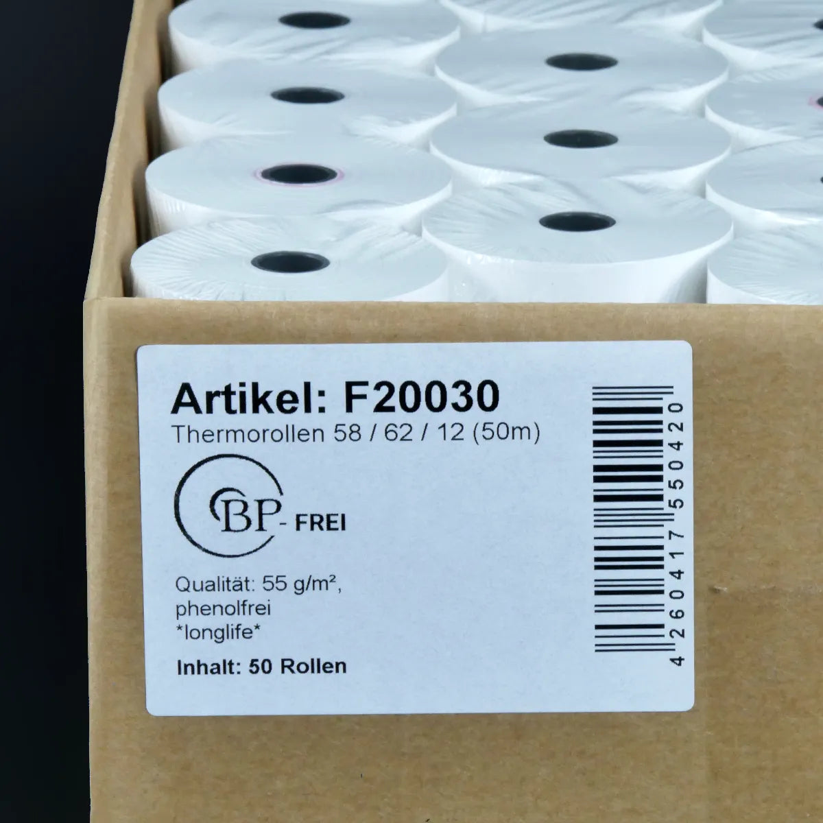 - 1 Karton mit 50 Thermorollen